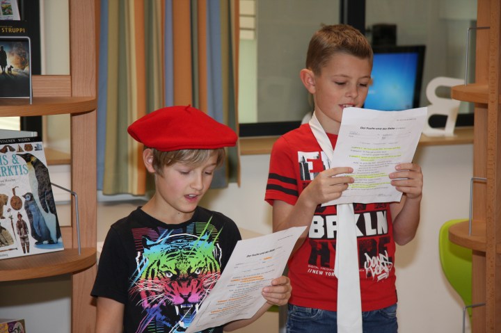 Im Rahmen von Deutsch führten die jungen Besucher ein kurzes Lesetheaterstück auf, welches sie zuvor mit Hilfe von Schülerinnen und Schülern der NMS geprobt hatten.