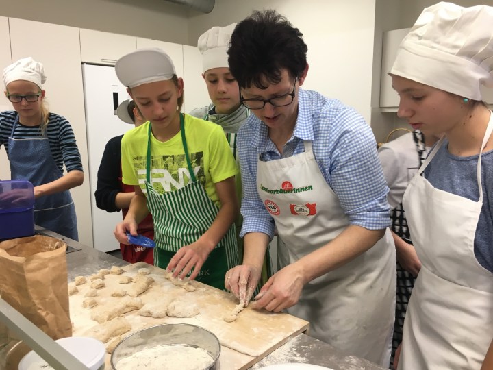 Mit den Schülerinnen und Schülern der 3. und 4. Klassen wurde ein Brotbackkurs mit der Seminarbäuerin Maria Stütz veranstaltet. Sie konnten selbst erleben, wie einfach es ist, gutes Brot zu backen und worauf es dabei ankommt.