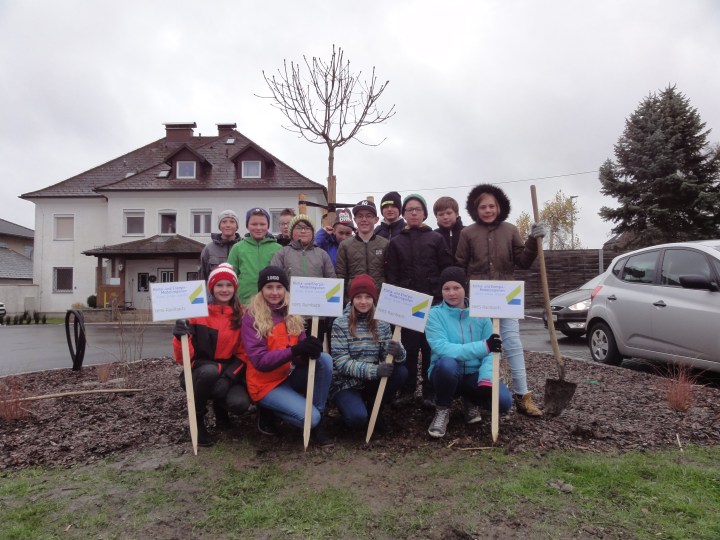Gemeinsam mit Mitarbeitern der Straßenmeisterei Freistadt und der Gemeinde setzten Schülerinnen und Schüler der dritten Klassen im Sinne der Nachhaltigkeit neue Bäume vor die Schule und am Ortsende von Summerau.