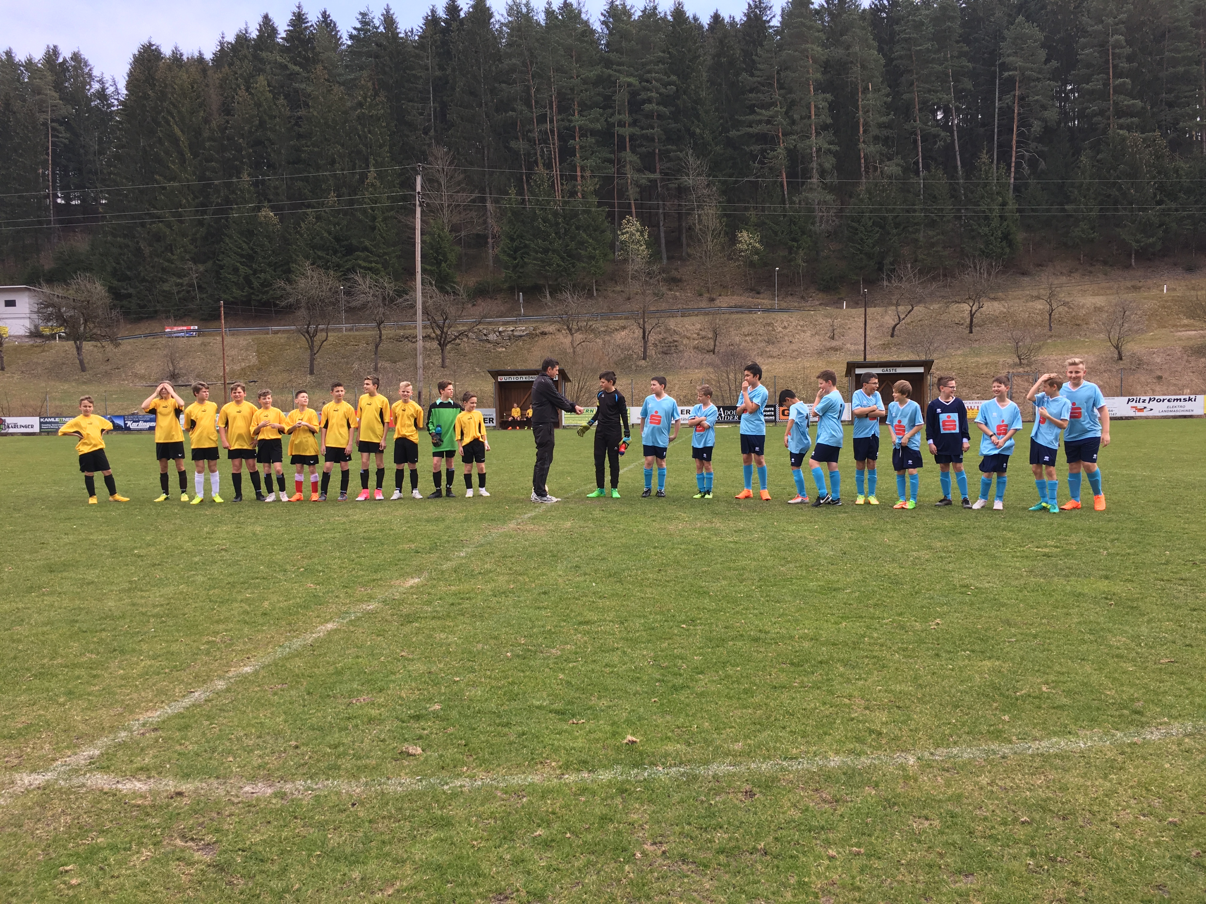 In der 13. Minute gingen wir mit einem Konter 1:0 in Führung. Fünf Minuten später konnte unser Tormann Julian Mayr einen Schuss aus sieben Meter entschärfen. Ein weiterer Schuss aus sieben Meter führte allerdings zum 1:1.