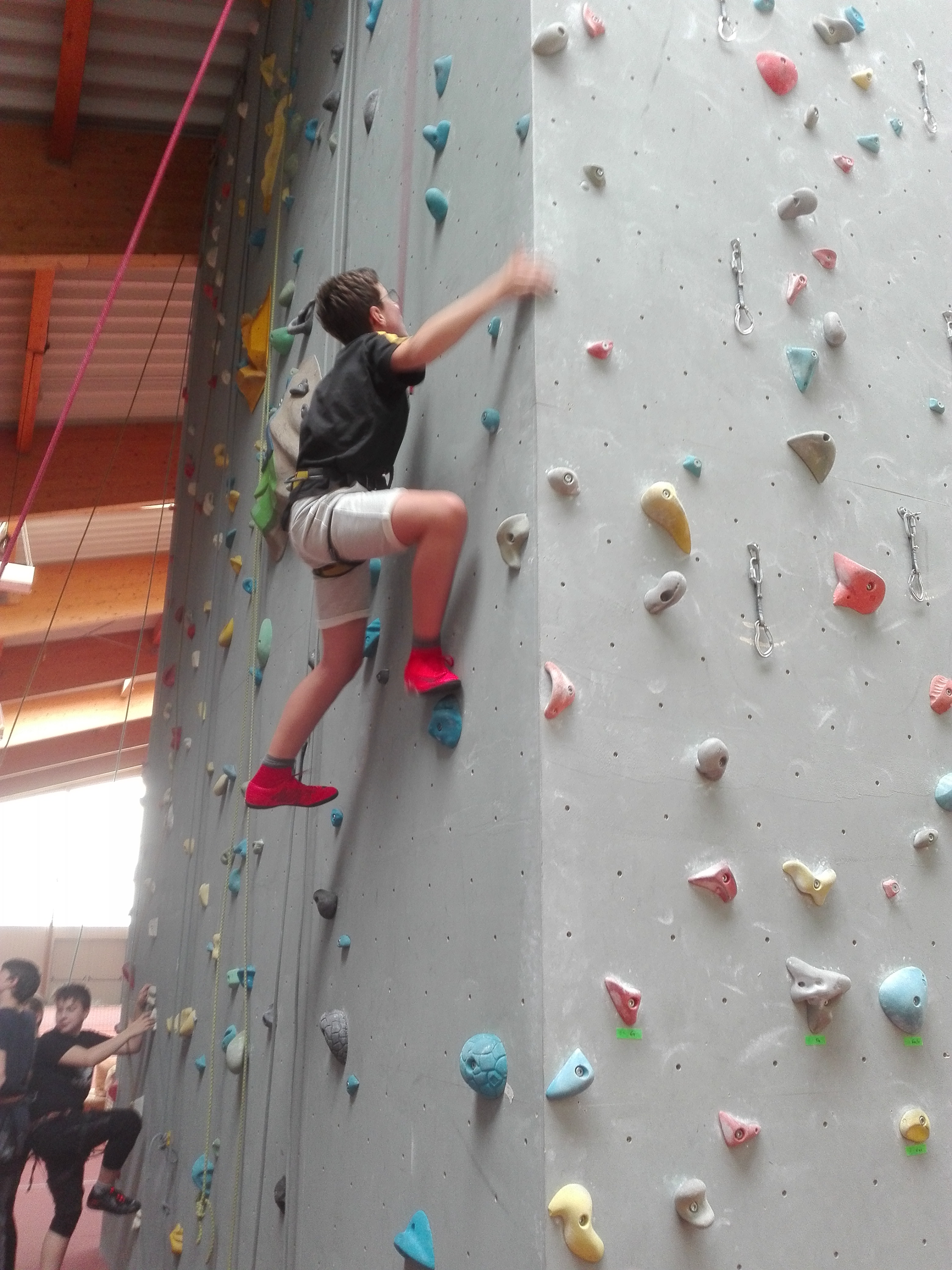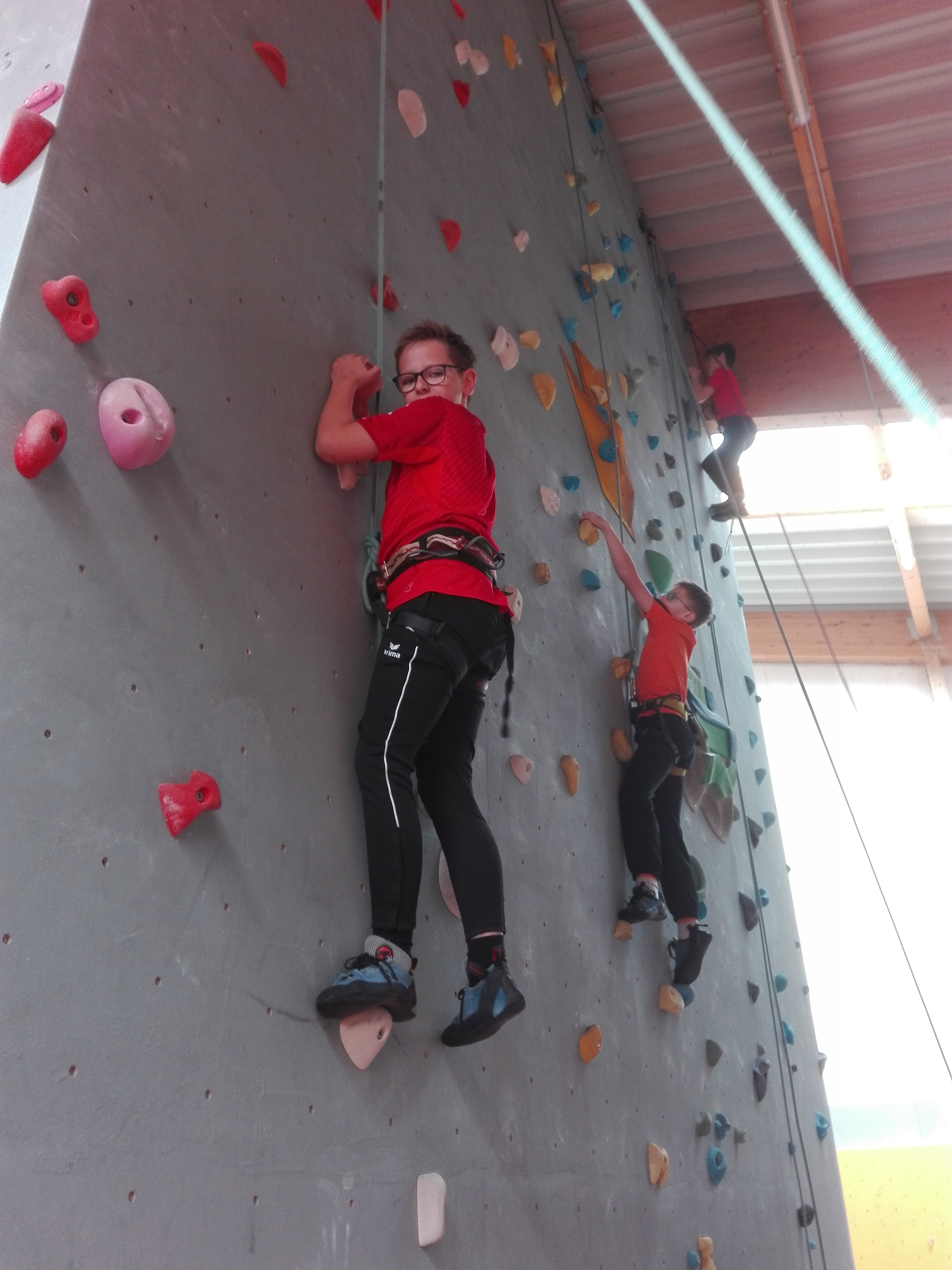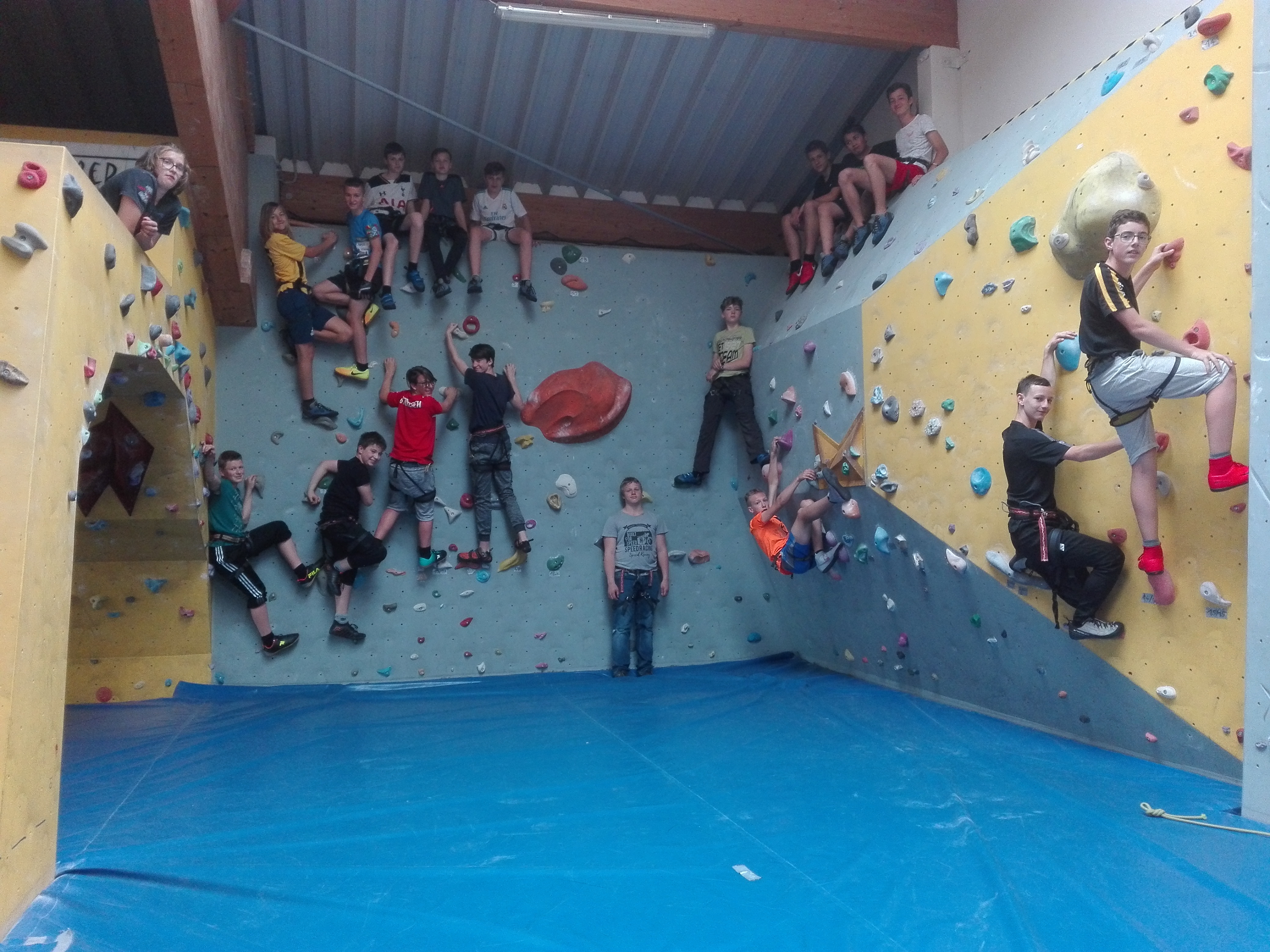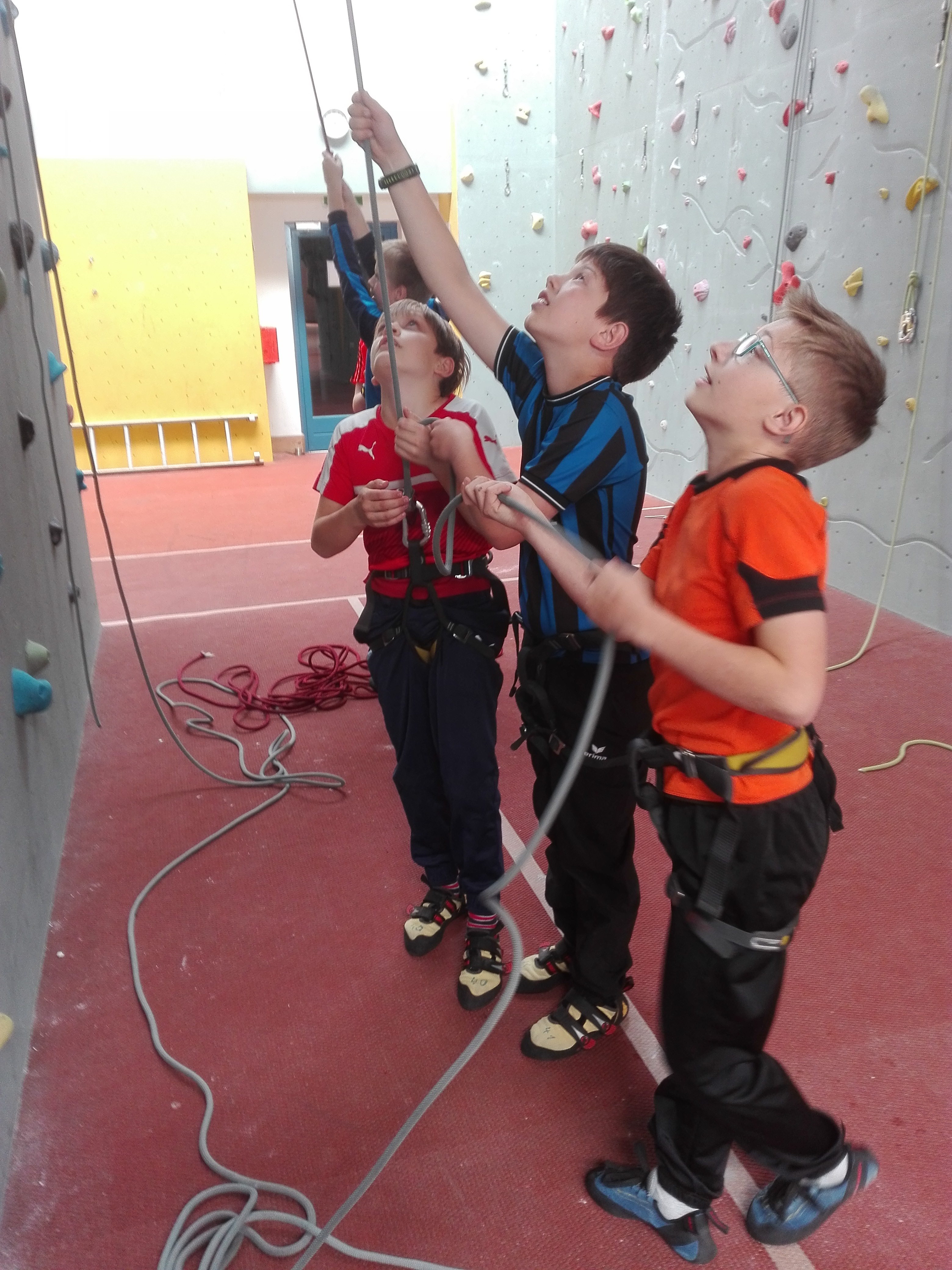Im Rahmen des Turnunterrichts verbrachten 11 Schüler der 1. Klasse und 18 Schüler der 4. Klasse einen Nachmittag in der Kletterhalle in Bad Leonfelden.