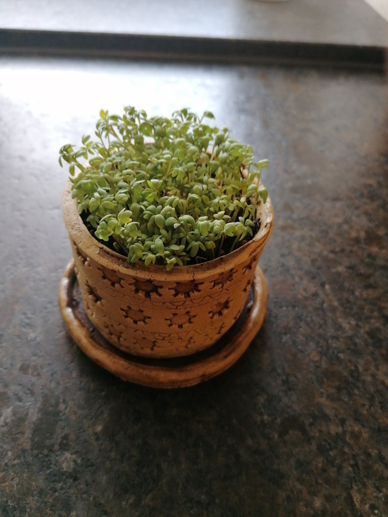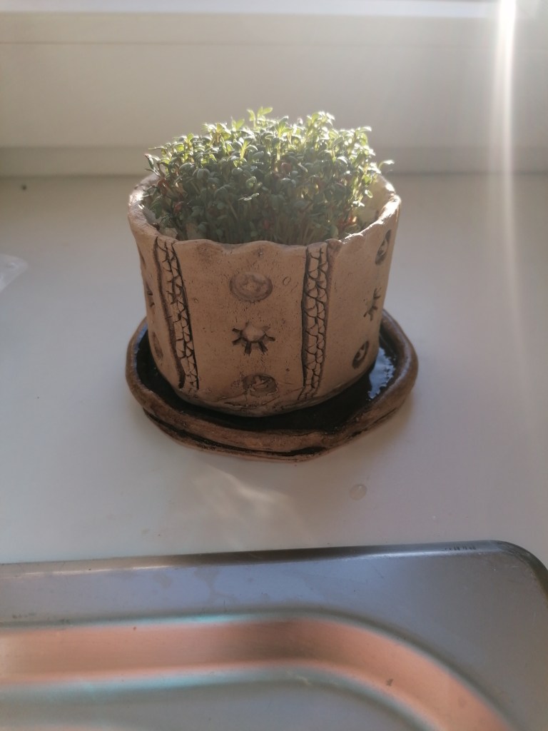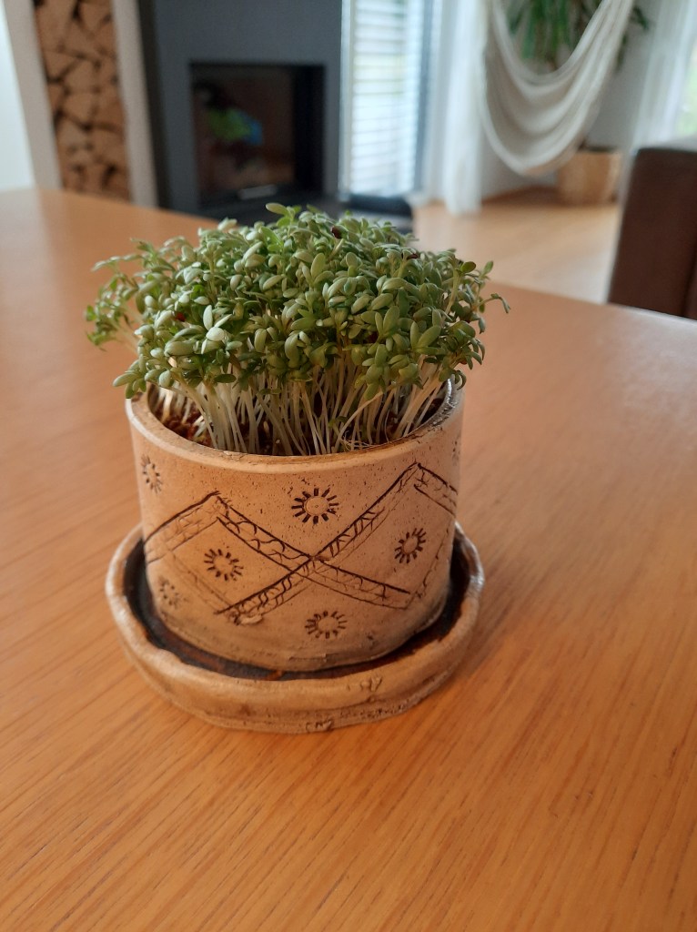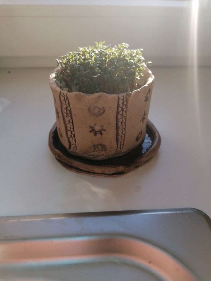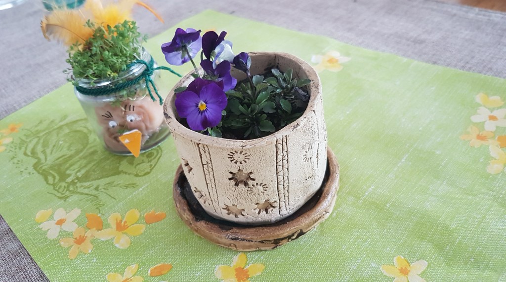 Die Schülerinnen und Schüler der 1. Klasse töpferten mit Freude ihre Pflanzgefäße. Die angebauten Samen entwickelten sich inzwischen prächtig und können teilweise schon genossen werden!