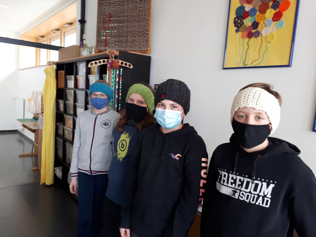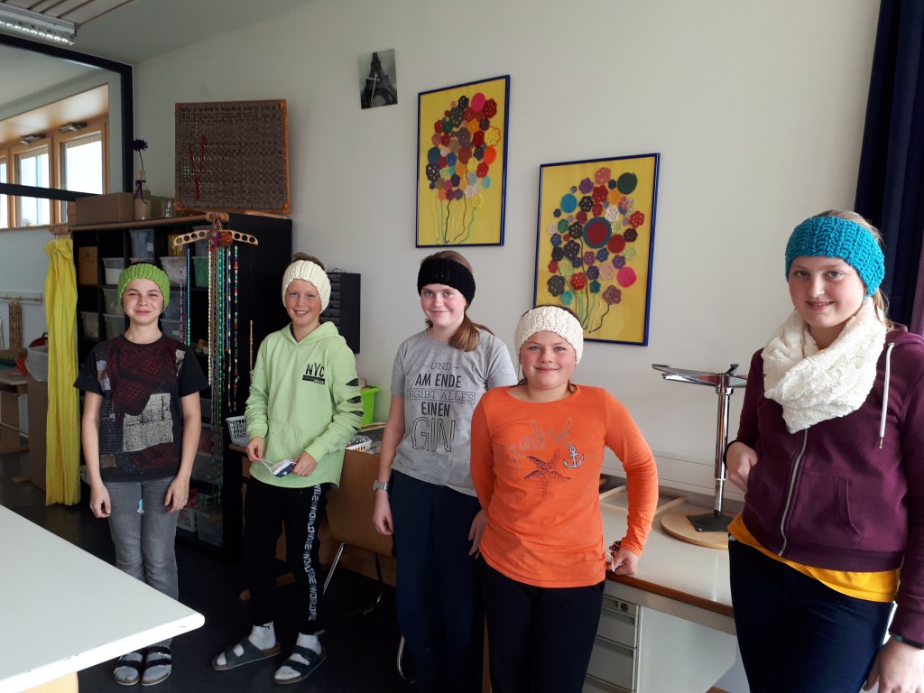Schülerinnen und Schüler haben bereits warme Stirnbänder daraus hergestellt.