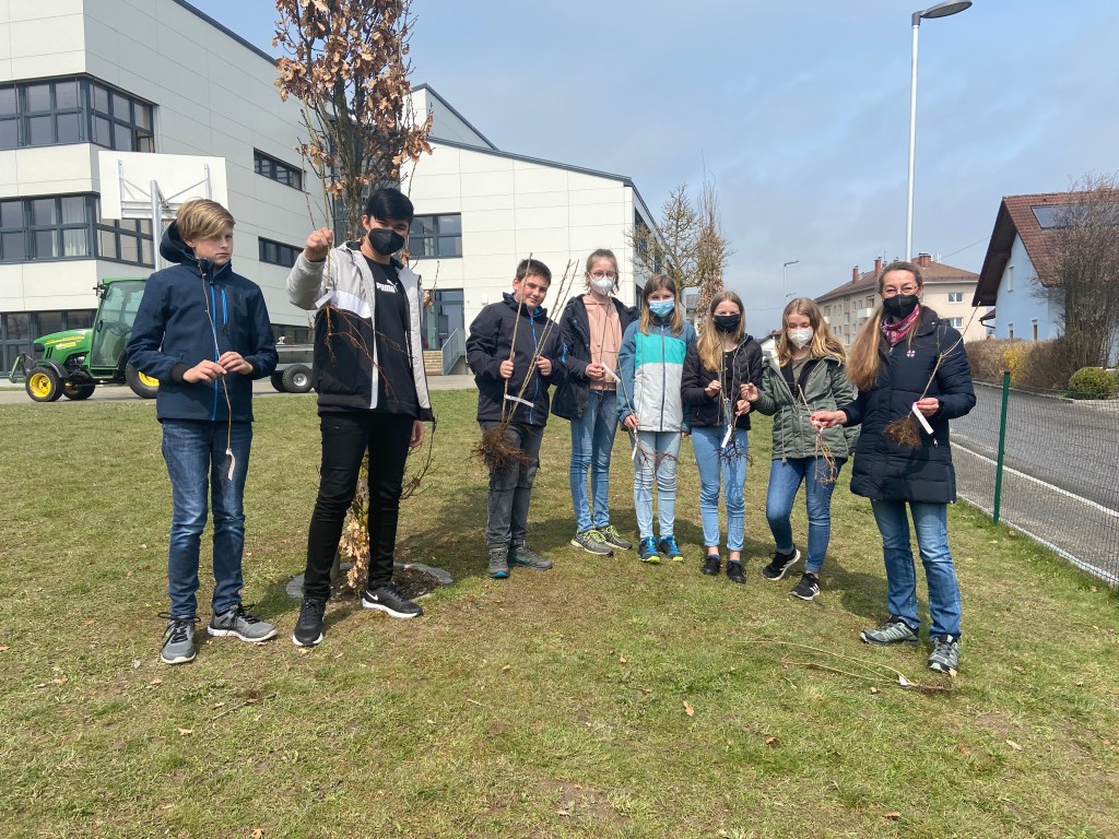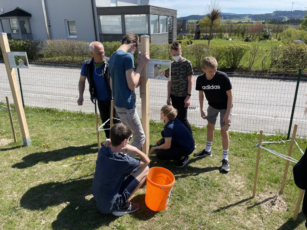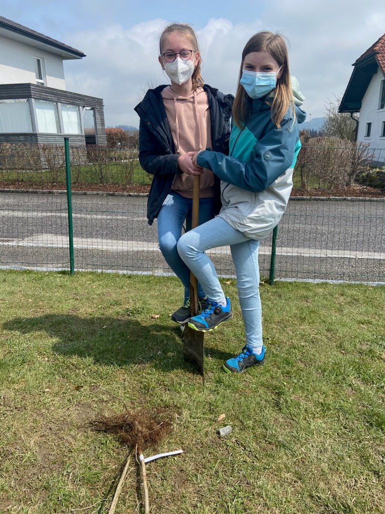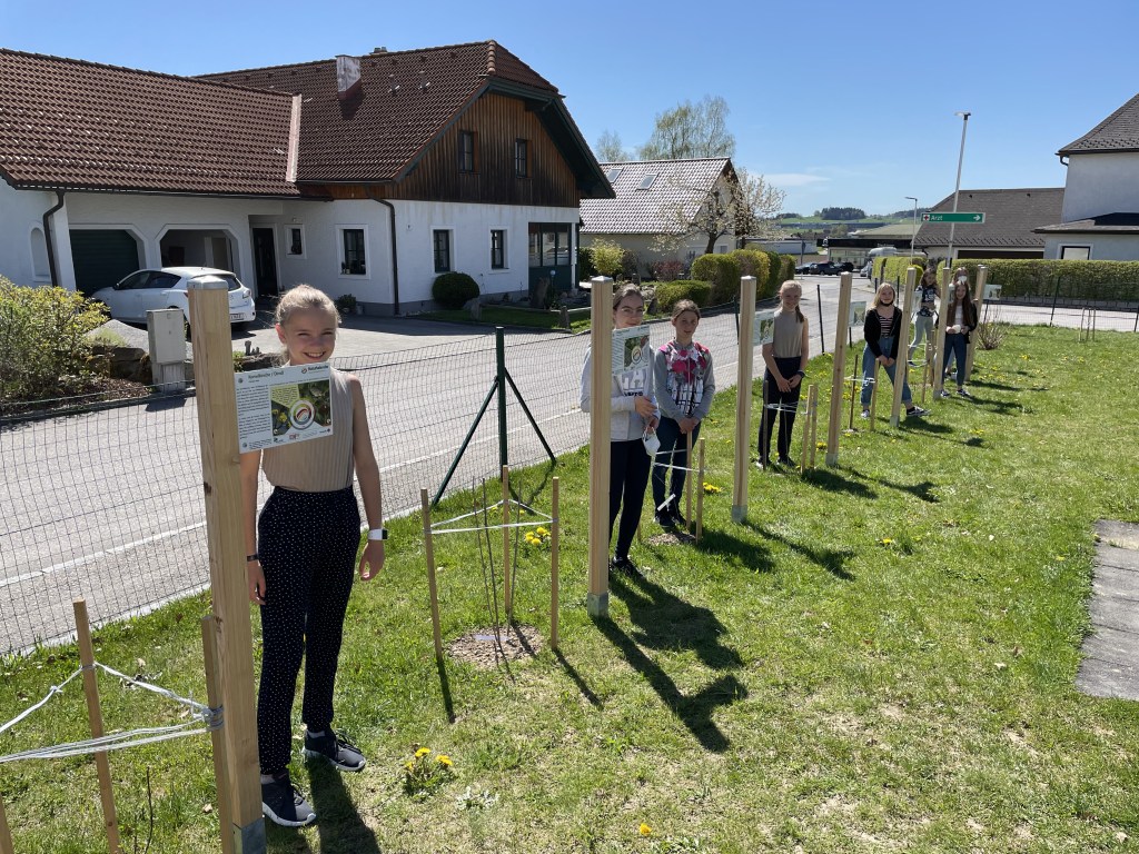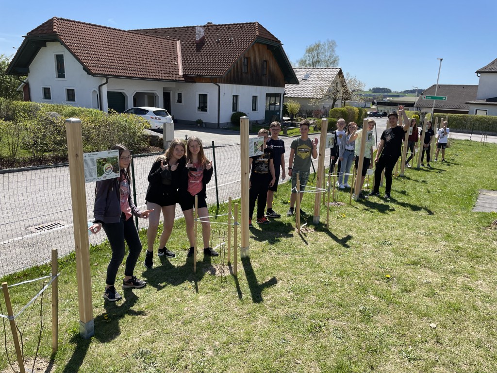 Unter dem Motto „Wir schauen auf die Natur“ setzten die Schülerinnen und Schüler der 3. Klassen der MS Rainbach eine KLAR-Hecke im Schulgarten. KLAR steht übrigens für Klimaanpassungs-Modellregion. Mit tatkräftger Unterstützung durch unseren Schulwart Erich Pröll waren die zehn unterschiedliche Sträucher wie zum Beispiel die Purpurweide, die Hundsrose und der Schlehdorn schnell in der Erde. Anschließend stellten die Schüler/innen Info-Tafeln zu den Sträuchern und eine Übersichtstafel auf, sodass jede/r auf die „Natur schauen kann“.