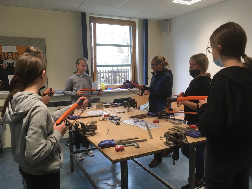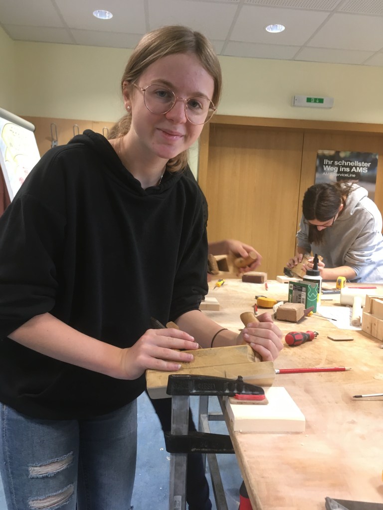 In der zweiten Schulwoche fuhren 17 Mädchen der vierten Klassen zum AMS Freistadt, um dort an der Technikrallye teilzunehmen und in handwerklich-technische Bereiche hinein zu schnuppern. Die technischen Ausbildnerinnen des BIZ stellten mit unseren Schülerinnen Schlüsselanhänger aus Metall und Schatullen aus Holz her. Die Mädchen durften schleifen, bohren, sägen, hobeln und waren dabei sehr geschickt. Außerdem konnten unsere Schülerinnen das Programmieren ausprobieren. Abschließend stellten zwei Schülerinnen der HTL Freistadt ihre Schule vor.