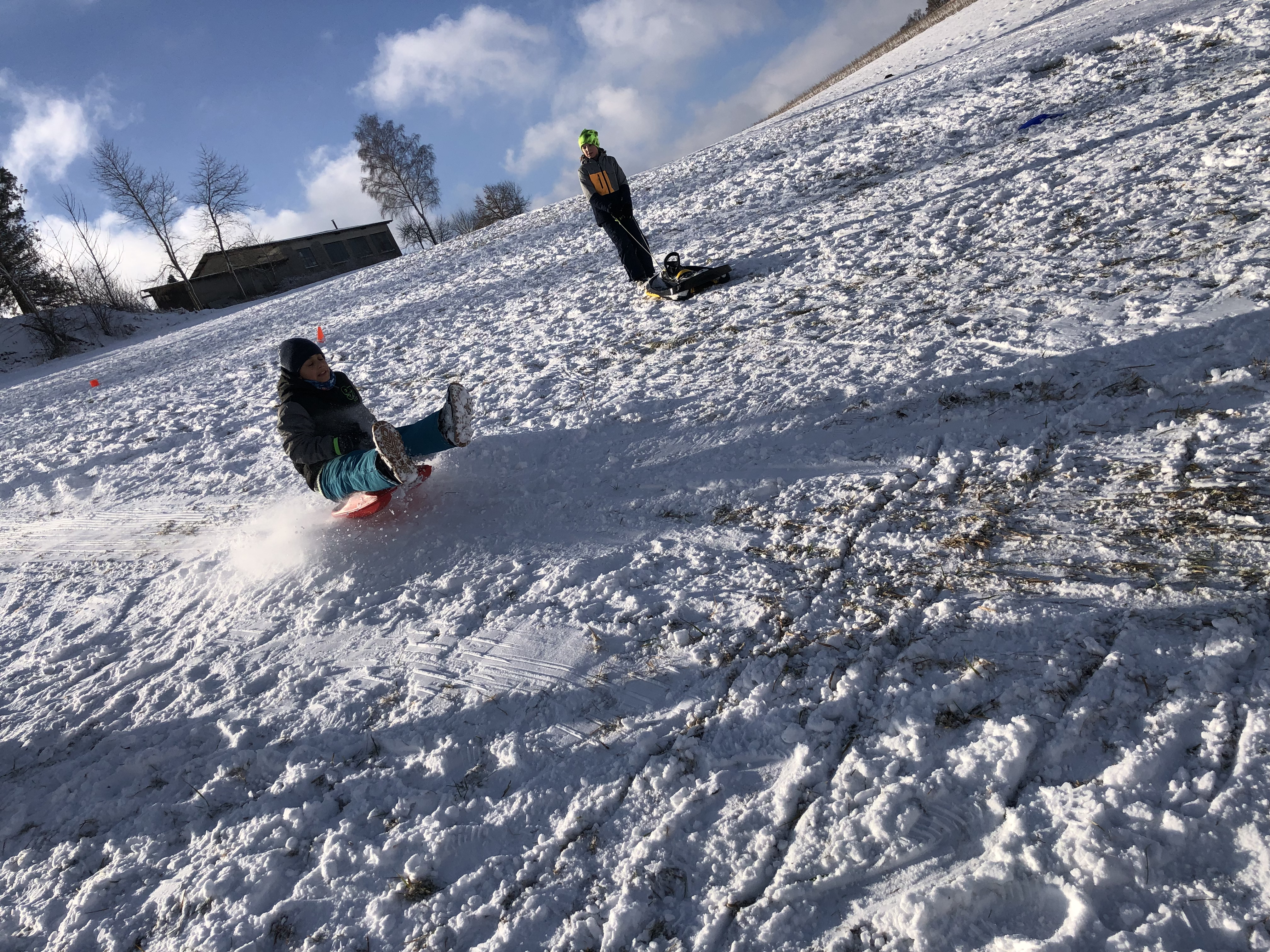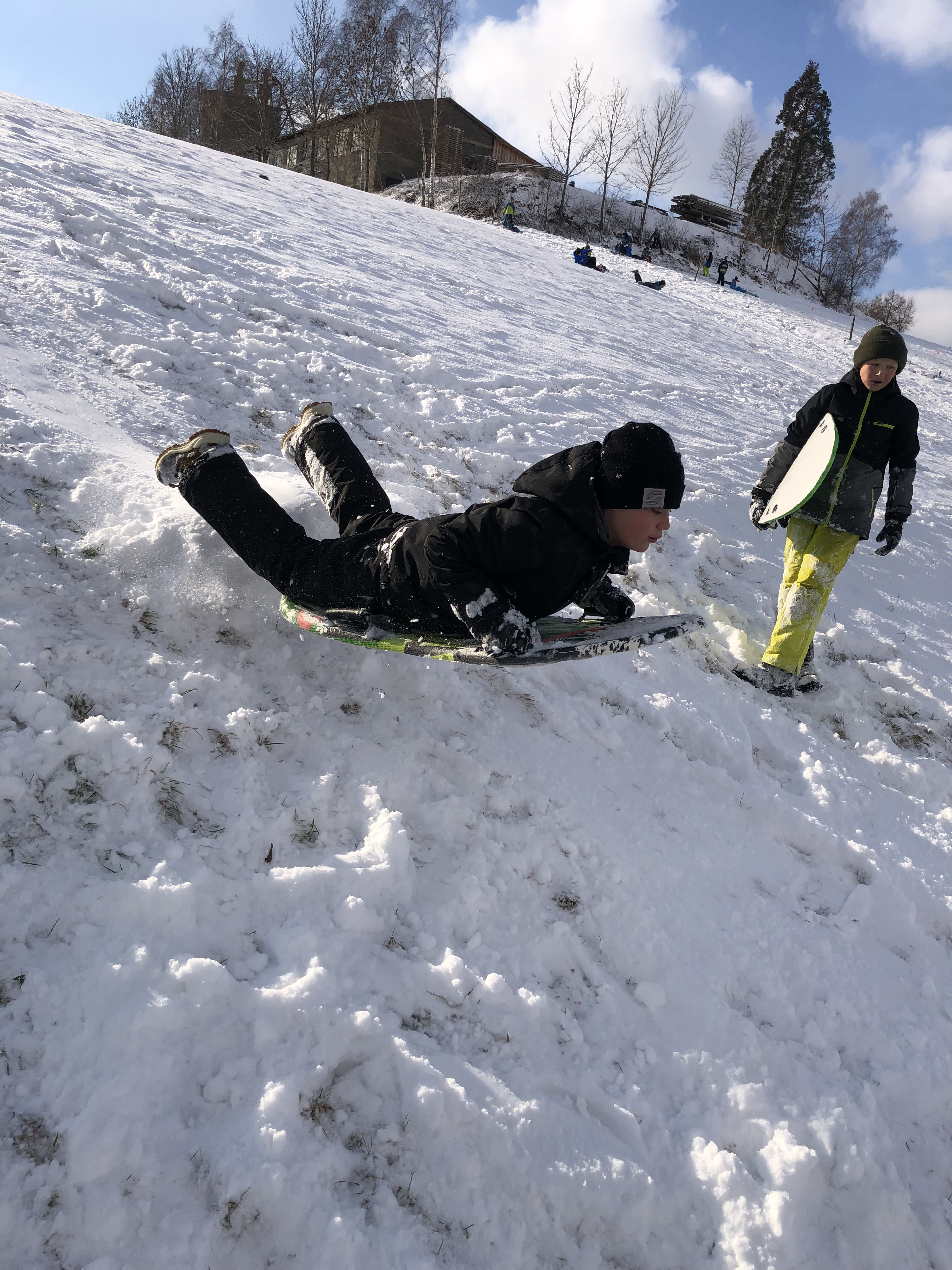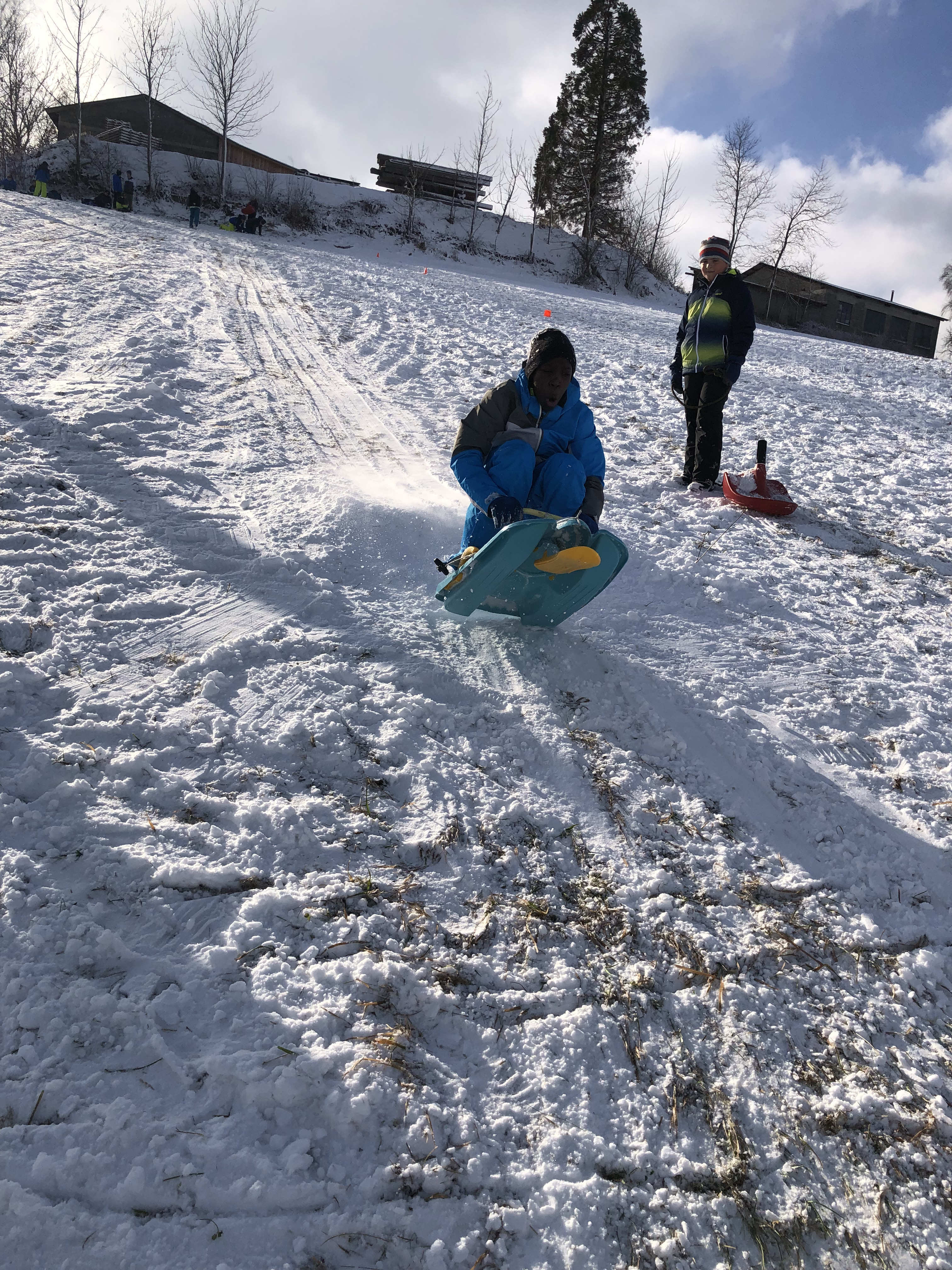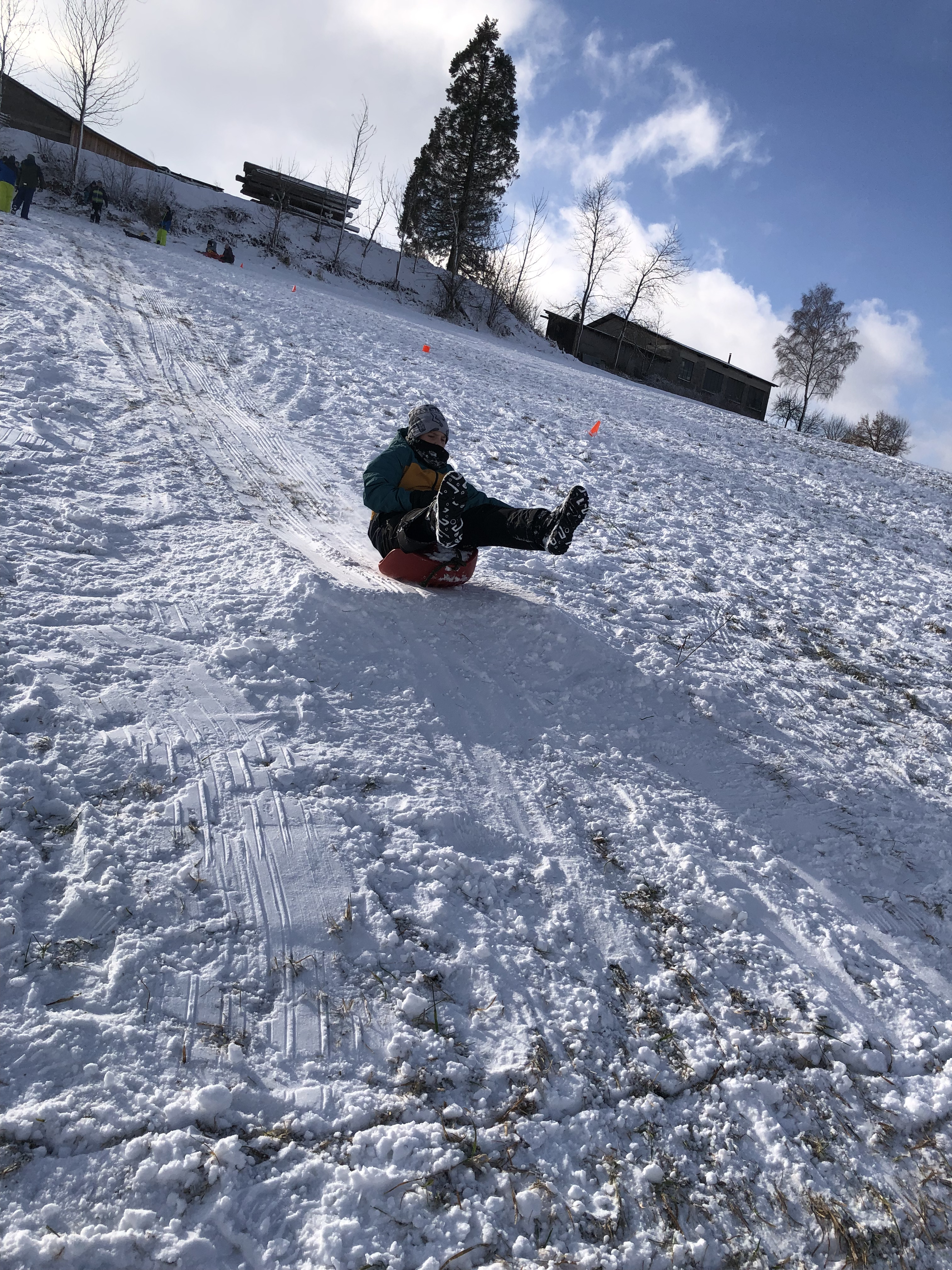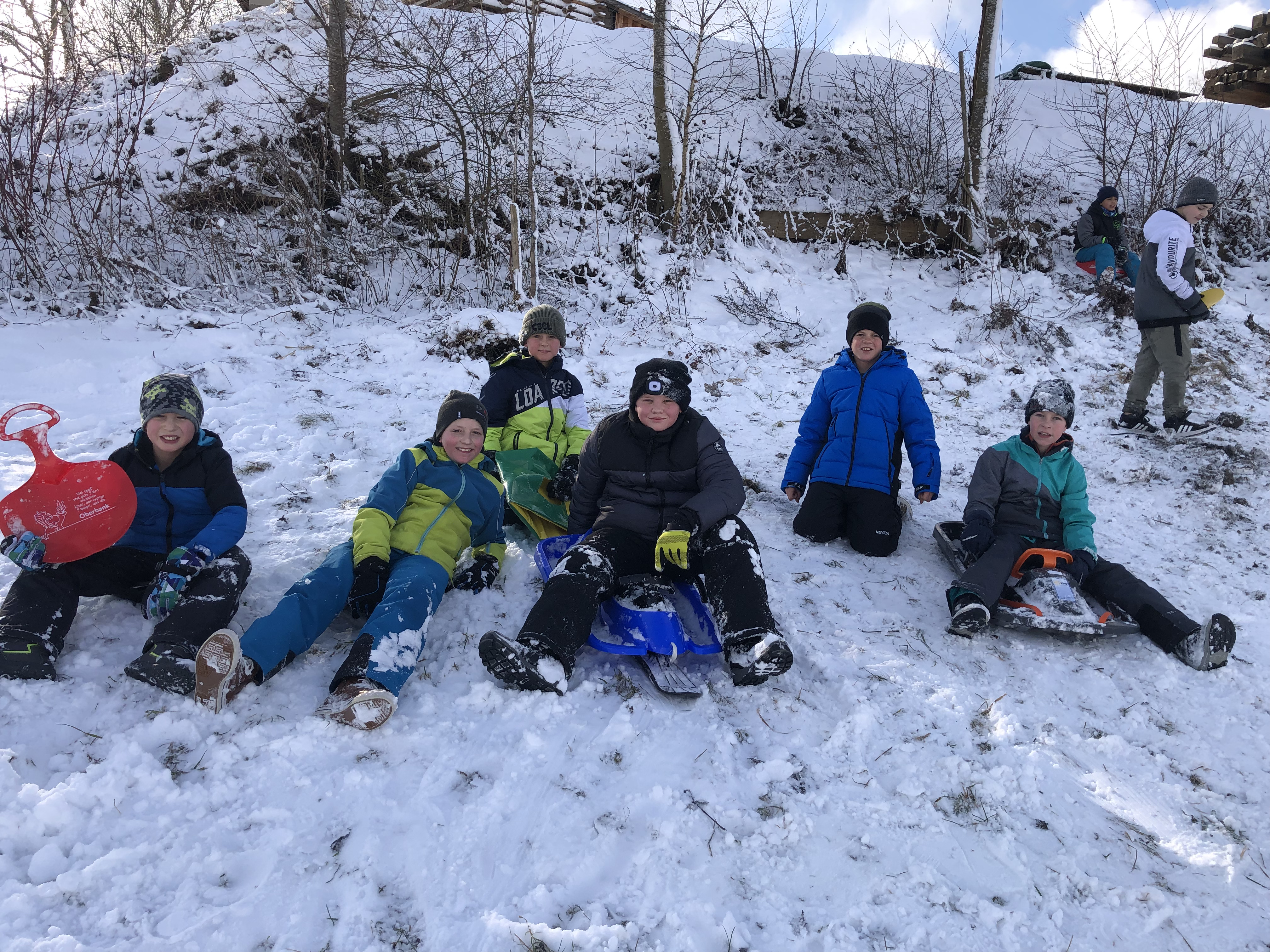 In der MS Rainbach wurde der Neuschnee im Sportunterricht gleich genutzt. Die Schülerinnen und Schüler fuhren bei perfekten Schneebedingungen mit ihren Bobs und Co. den Hang hinunter. Auch so mancher Schanzenrekord wurde von den Kindern eifrig gebrochen. Abschließend durfte die Schneeballschlacht nicht fehlen.