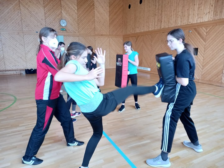 An zwei geblockten Nachmittagseinheiten – Turnen haben Ilse und Charly Doppler den Mädchen der beiden 4. Klassen die Grundlagen der Selbstverteidigung beigebracht und zusätzlich hilfreiche Tipps gegeben. Die Trainer:innen haben den Mädchen viele Handgriffe gezeigt, die man einsetzen kann. Außerdem haben die ausgebildeten Trainer:innen für Ju-jutsu und Selbstverteidigung wichtige Information für die eigene Sicherheit weitergegeben. Den beiden 4. Klassen hat es sehr viel Spaß gemacht und wir bedanken uns herzlich bei Ilse und Charly Doppler für die acht Stunden voller Eifer und Spaß.