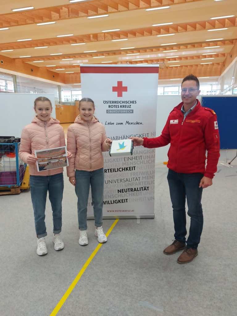 Am 23.03. wurde ein Schulbuffet zur Unterstützung für die Flüchtlinge der Ukraine organisiert. Der Gewinn des Schulbuffets ging an die Flüchtlinge der Ukraine, es wurden 308€ gesammelt. Johanna und Magdalena Mülleder brachten den Erlös dem Roten Kreuz in Freistadt und erhöhten die Spende auf 350€.