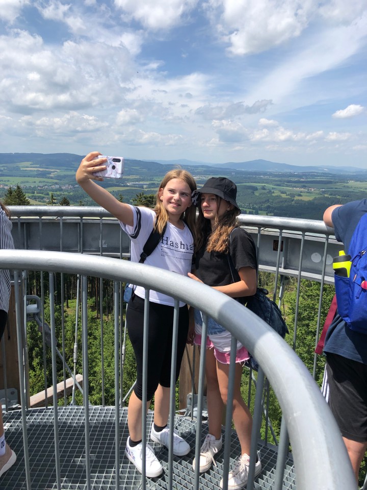 Am 14. Juni 2022 erhielten die Schüler:innen der 2B Klasse die Möglichkeit unsere Partnerschule in Kaplice zu besuchen. An diesem Tag lernten die Schüler:innen verschiedene Klimaanpassungsmaßnahmen kennen. Neben dem gestalten von verschiedenen Moosbildern wurden zwischen den Kindern auch grenzüberschreitende Freundschaften geknüpft. Am Nachmittag stand ein gemeinsamer Ausflug zu einem Aussichtsturm in Kaplice auf der Programmliste. Hier konnte bei strahlendem Sonnenschein die südböhmische Landschaft genossen werden.