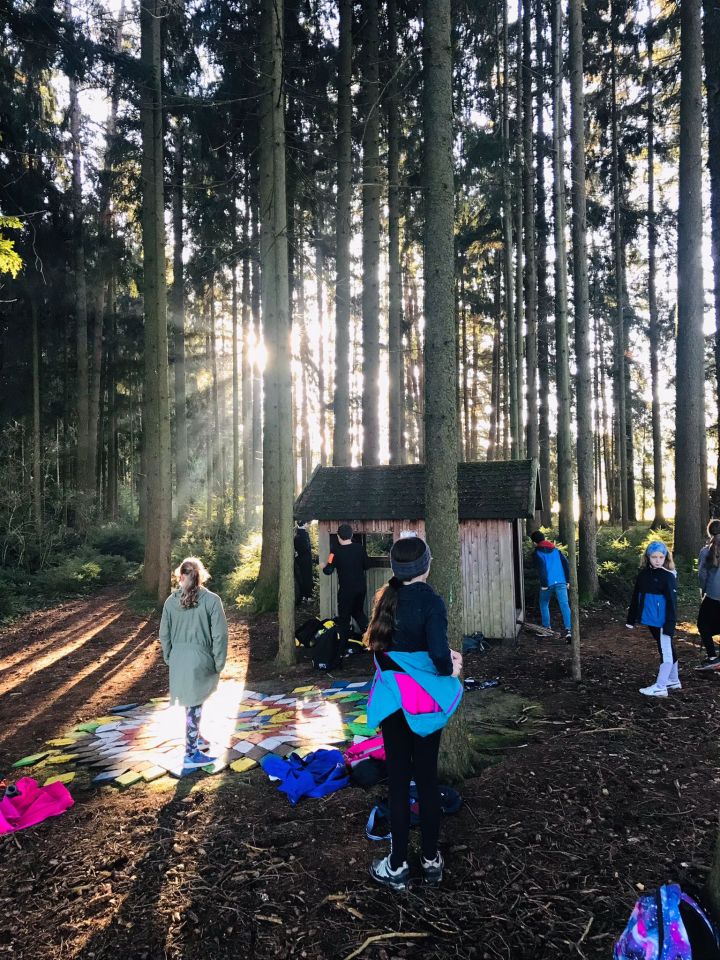 Die Kinder des Ortes, die den kürzesten Schulweg haben, drehten den Spieß um. Sie kamen bei der Schule zusammen und gingen anschließend den Farbenweg. So hatten sie ebenfalls ein Wandererlebnis in der Früh.