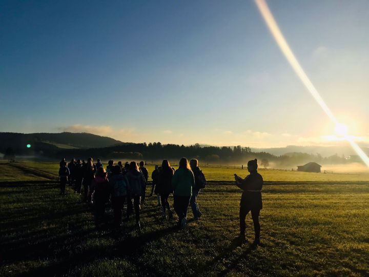 Im Rahmen unseres Klimaprojektes 2022/23 führten wir heuer wieder unsere Sternwanderung durch. Sternwanderung bedeutet, dass alle Schülerinnen und Schüler den Weg in die Schule zu Fuß absolvierten. Zum Glück bei prächtigsten Bedingungen.