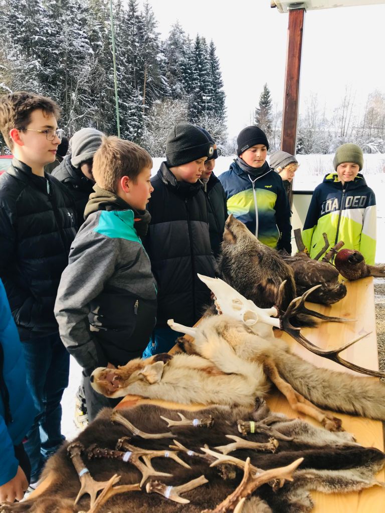 Am 12. 12. 2022 trafen sich die Schüler:innen der 2. Klassen in Begleitung von Hr. Hochreiter und Fr. Haslinger mit einigen Jäger:innen und ihren vierbeinigen Begleitern bei der Wildkammer am Badeteich.