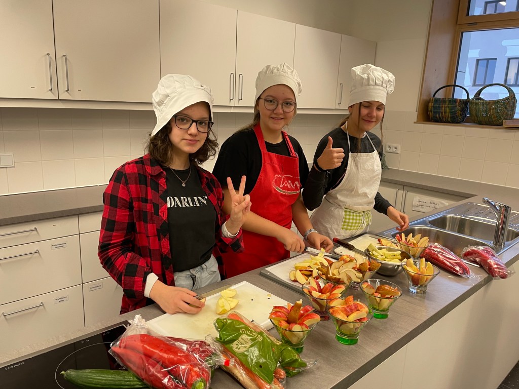 Zwischendurch gab es zur Stärkung eine gesunde Jause. Die Schülerinnen und Schüler der dritten Klassen bereiteten diese für die ganze Schule zu.