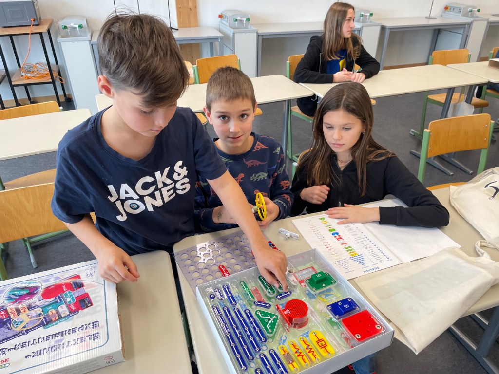 Dabei spielten sie bei einem Mitmach-Theater mit, übten englische Dialoge, wendeten das Informatik-Programm „Paint“ an, sangen Lieder und probierten die unterschiedlichsten Instrumente aus, bestaunten physikalische Versuche, stellten selbst weihnachtliche Gegenstände her und absolvierten die unterschiedlichsten Stationen im Turnsaal. Vier Schülerinnen und Schüler der 4. Klassen MS begleiteten die VS-Kinder als Guides und standen für alle möglichen Fragen zur Verfügung.