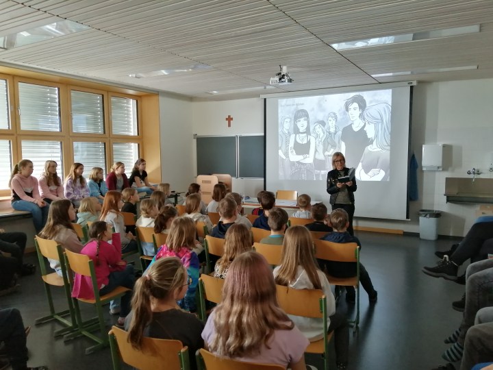 In diesem Jahr stellte uns die österreichische Kinder- und Jugendbuchautorin ihre neuesten Werke vor: „Die Spur der Krähen“ und „Biosonix – Die Spur der roten Äpfel“
