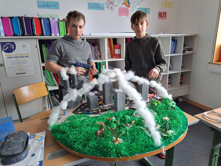 Die 4. Klassen der Mittelschule Rainbach haben sich intensiv mit dem Thema Klimawandel auseinandergesetzt. Dabei wurden in Gruppen Themen bearbeitet und Plakate, ein Kurzfilm und eine plastische Darstellung des Treibhauseffekts hergestellt.