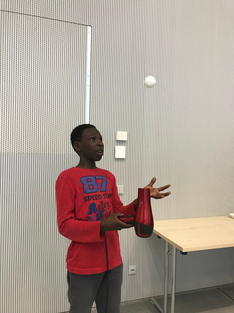Zum Schluss nahmen wir noch an einem Workshop teil. Dort erklärte uns eine nette Physikerin das Wichtigste über das Thema „Fliegen“.
