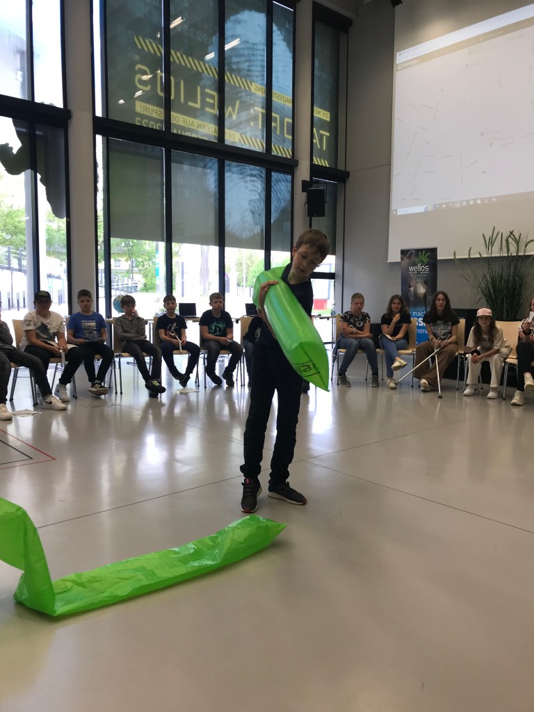 Am 11.Mai fuhren wir mit dem Bus nach Wels, um bei einem Workshop im Welios, über das Thema Klima, teilzunehmen. Als wir ankamen erhielten wir direkt einen netten Empfang vom Personal. Wir konnten unsere Rucksäcke in Boxen geben und dann fing der Workshop schon an. Als Erstes sprachen wir über das Thema der Erderwärmung, welche Stoffe in der Atmosphäre sind und welche Folgen die Erwärmung für die Erde hat. Nach kurzem Besprechen durften wir dann selbst an die Arbeit. Es gab einen Stationenbetrieb mit 11 Stationen. Zum Beispiel durften wir eine Kerze mit den Gasen, die beim Mischen von Natron und Essig entstanden, auslöschen. Außerdem durften wir viele weitere Experimente ausprobieren. Am Ende des lehrreichen Workshops besprachen wir noch die durchgeführten Experimente und verglichen unsere Ergebnisse. Nach dem Workshop stand eine kurze Jausenpause am Programm. Danach durften wir noch die Ausstellung des Welios besichtigen und großartige Geräte ausprobieren. Es gab zum Beispiel einen Tunnel, in welchem der Schall gedämpft wurde oder einen Flugsimulator. Nach zwei Stunden mussten wir wieder beim Eingan sein und fuhren wieder zurück in die Schule.