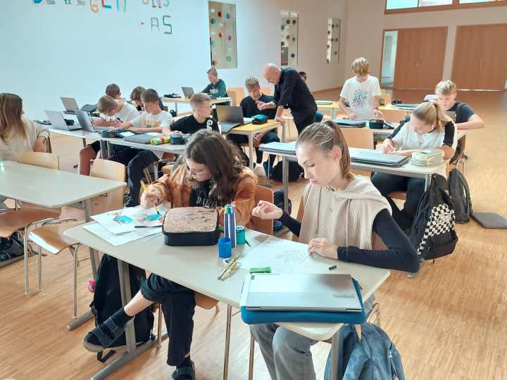 Schüler:innen und Schüler der 3. und 4. Klassen lernten das Handwerk des Karikaturisten beim Karikaturenworkshop mit Rupert Hörbst. Was ist eine Karikatur? Wie zeichnet man eine Hand? Aus welchen geometrischen Formen besteht ein menschlicher Körper? Diese Fragen und noch mehr wurden im Basiskurs praktisch beantwortet, bevor die Jugendlichen an die kritische Auseinandersetzung mit den Themen Umwelt, Nachhaltigkeit und Politik herangeführt wurden. Das Ergebnis der Auseinandersetzung wurde in den Schülerzeichnungen sichtbar gemacht.
