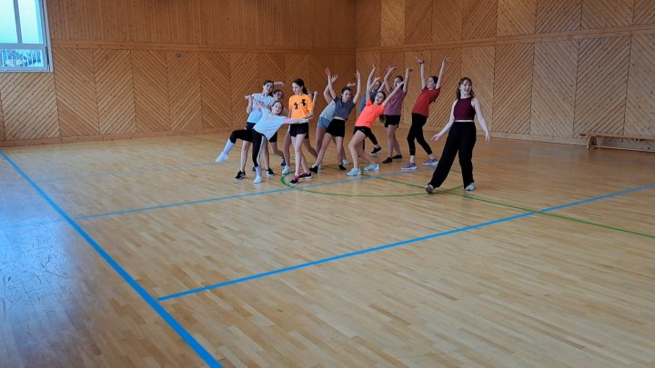 Jessica Donev beeindruckte alle mit ihrer Professionalität und ihrer Fähigkeit, eine tolle Choreografie zu vermitteln, die speziell für die bevorstehende Aufführung bei der Schulroas einstudiert wurde.